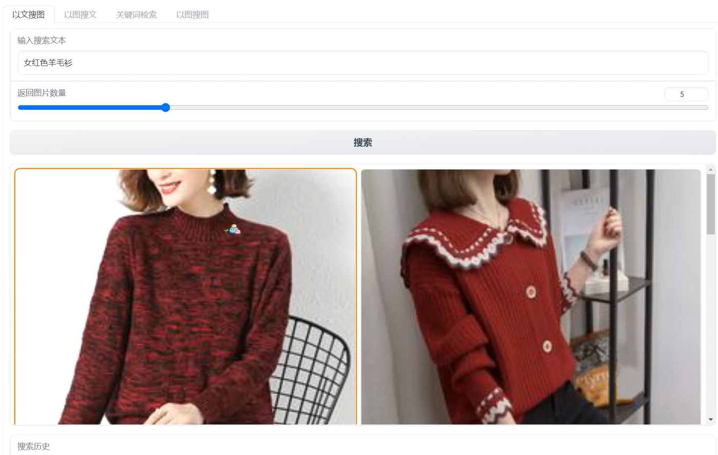 项目简介:随着电商平台的蓬勃发展,实现高效且快速的图文检索的需求日益增长。相比于传统的标签式检索方式,跨模态图文检索有更强的灵活性。但现有的双流模型还存在一些挑战,本项目以此为出发点进行研究,主要研究内容如下:(1)针对CN-CLIP模型图文特征对齐较难的问题,提出图像映射文本特征网络将图像映射为伪语言标记,增强跨模态语义的融合,提高图文检索的性能。(2)针对检索速度较慢的问题,在检索时构建Faiss索引,提升检索大规模电商数据时的检索速度。(3)在所提方法基础上设计和搭建了一个图文检索系统,系统主要功能包括图像检索、文本检索、检索结果展示等基本功能,满足用户对于电商领域跨模态图文检索的需求。