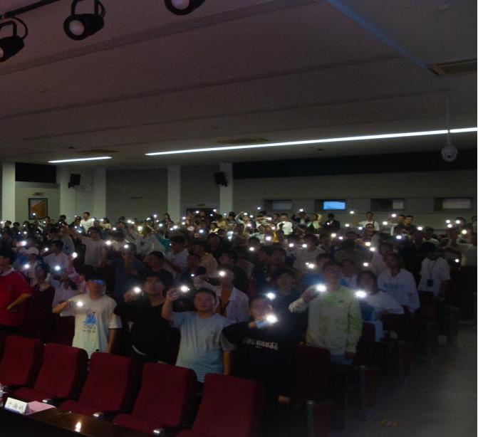 最后,由卢冠宇、陆添、张嘉伟、徐明远四位新生代表领唱,全体新生合唱五四版《错位时空》,表达了团员青年苦练本领、为党的事业接力奋斗的决心,大家一起挥舞着闪光灯,本次活动至此画上了圆满的句号。