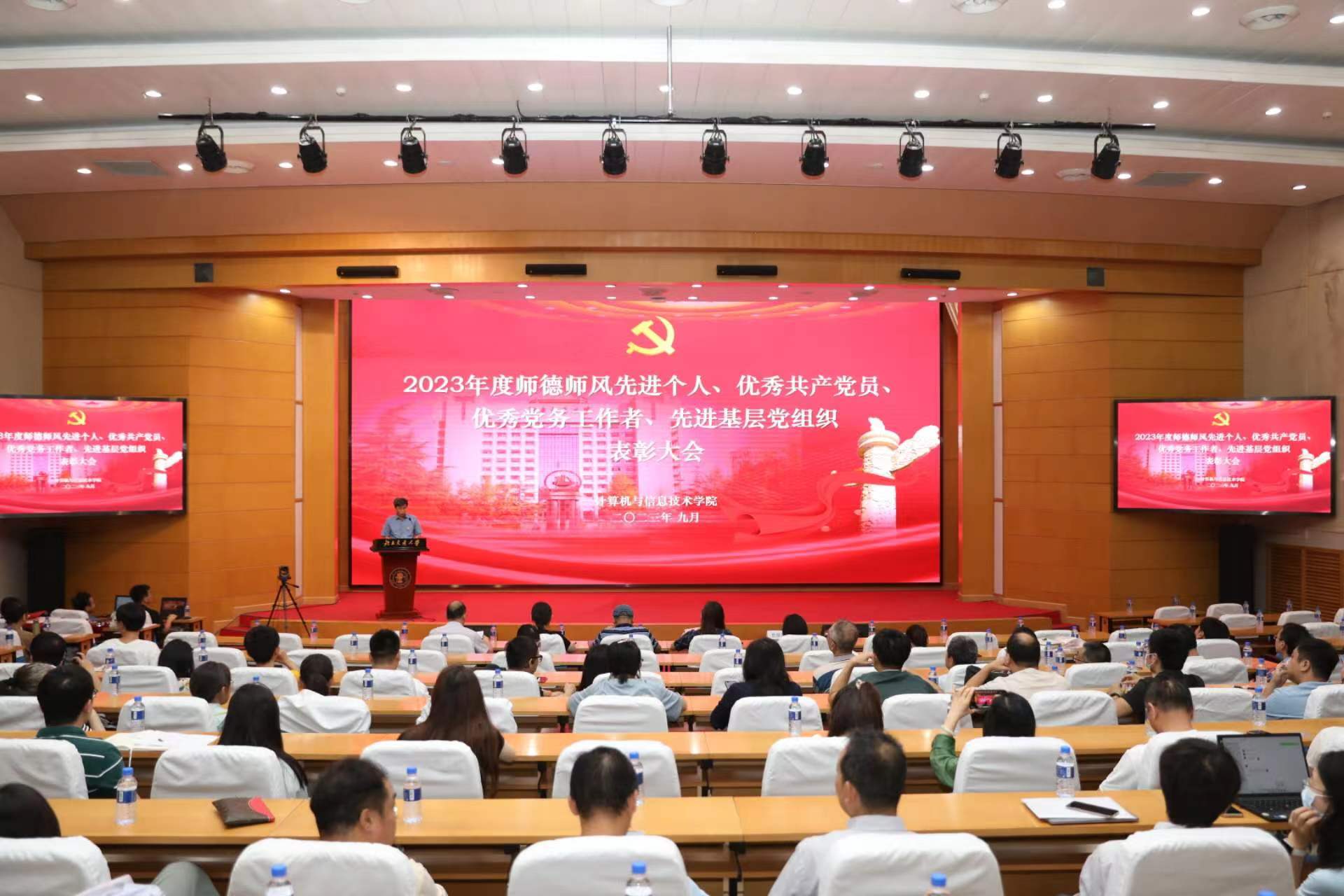 为推动学习贯彻习近平新时代中国特色社会主义思想主题教育走深走实,认真落实党的二十大精神和习总书记关于教育的重要论述,选树优秀典型,引导我院教师群体坚守立德树人初心、潜心治学、开拓创新,锻造品格高尚、专业过硬的师资队伍,增强教师党员先锋模范作用和党支部战斗堡垒作用的发挥,9月7日下午,国产自拍 2023年度师德师风先进个人、优秀共产党员、优秀党务工作者、先进基层党组织表彰大会在科学会堂召开。大会由院党委副书记段春荣主持,校党委组织部副部长赵艳娥、校党委教师工作部副部长陈劲松受邀出席。