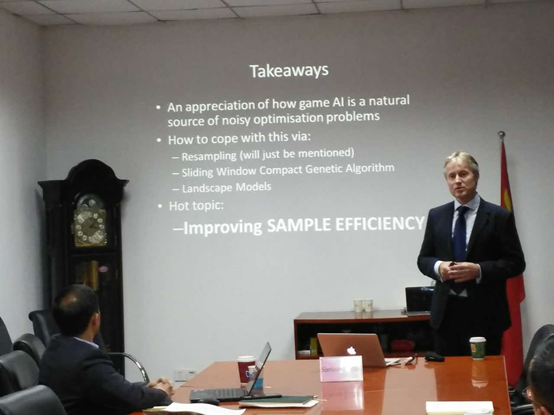 随后,Simon Lucas教授为我院师生做题目为“Game AI, Game Design and Noisy Optimisation”的讲座,并与师生热烈讨论。