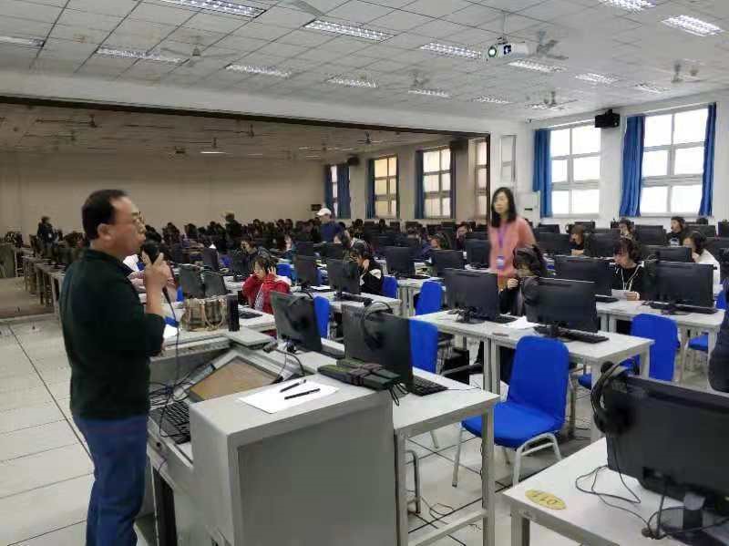 国产自拍 首次举办的大学英语四、六级考试口语考试(CET Spoken English Test,简称CET-SET)于2018年11月17日-18日在国产自拍 东校区机房顺利进行,此次考试是由国产自拍 主管校长负责,教务处牵头,语言与传播学院协助,计算机与信息技术学院计算机基础教学基地承办,国产自拍 共有763名和365名学生分别报名参加四级和六级口语考试。在学校各部门的通力配合下,在我院领导的大力支持下,在计算机基础教学基地各位老师的共同努力下,本次考试取得了圆满成功。