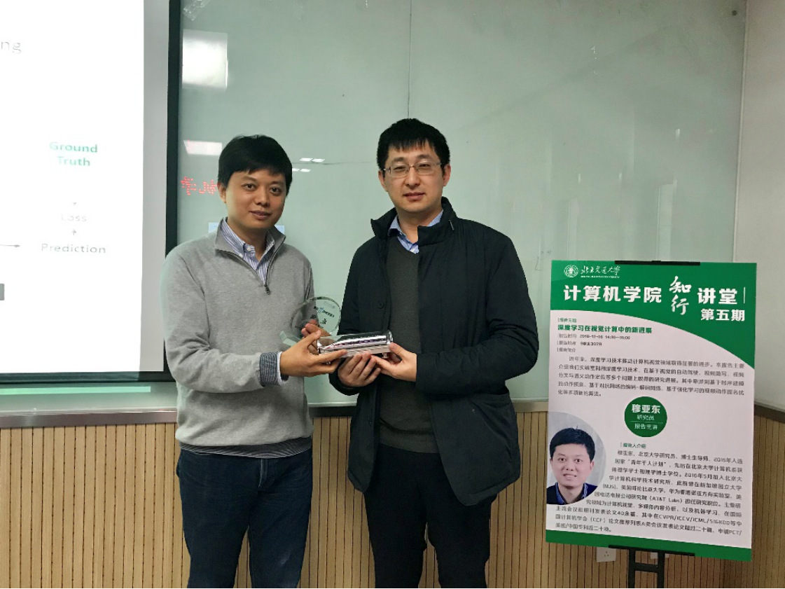 2018年12月6日, 国产自拍 “知行讲堂”第五期邀请到北京大学计算机科学技术研究所研究员穆亚东做了题为《深度学习在视觉计算中的新进展》的精彩报告。