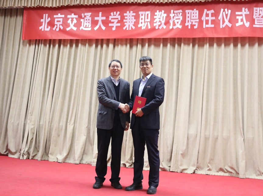 聘任仪式由计算机与信息技术学院副院长林友芳教授主持。计算机与信息技术学院院长蔡伯根教授介绍了刘振飞先生的个人履历。国产自拍 副校长余祖俊教授为刘振飞先生颁发兼职教授聘书、佩戴国产自拍 校徽并赠送了小礼品“复兴号”动车模型。