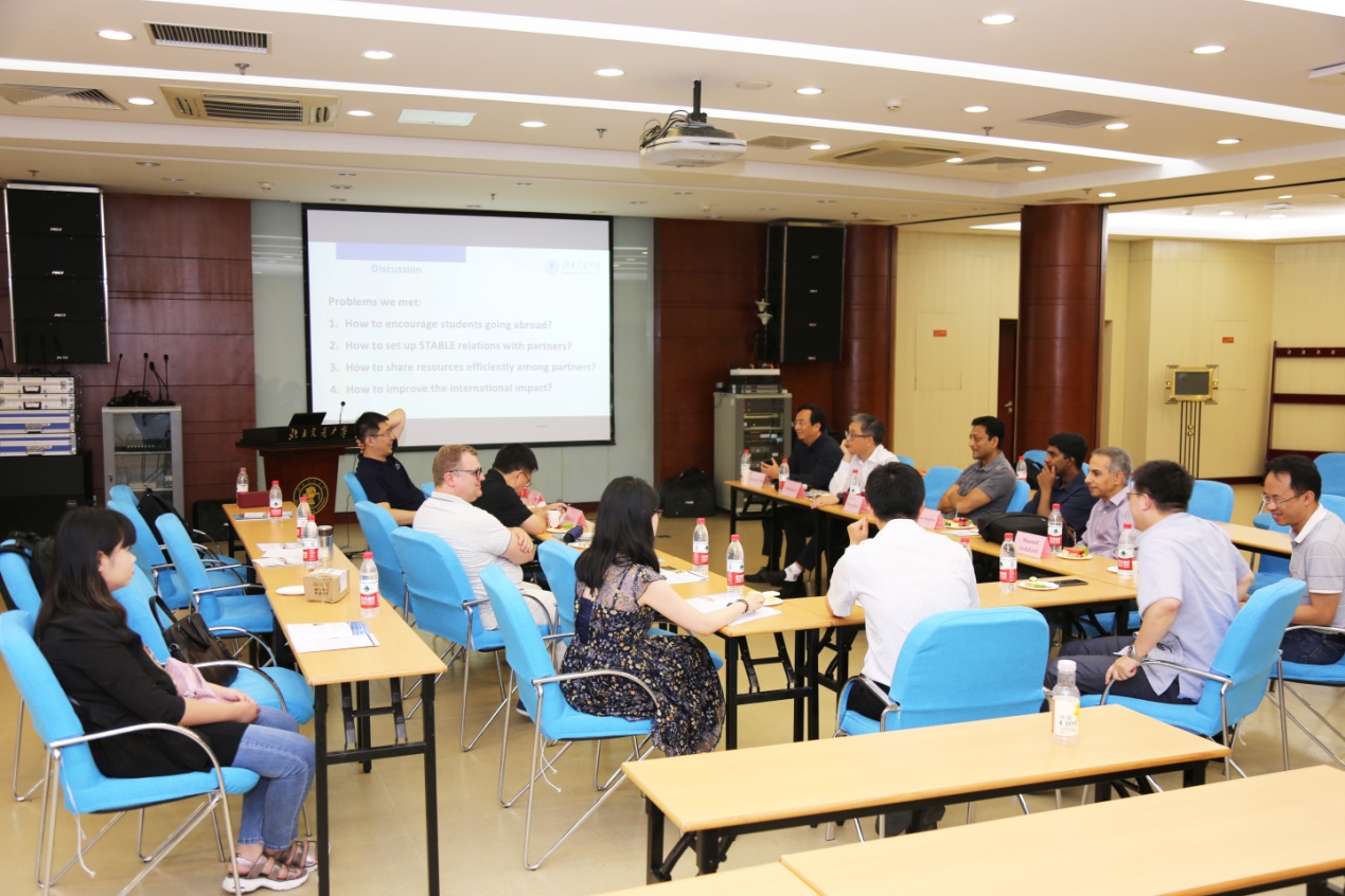 在国际化建设讨论环节,副院长李浥东、党委副书记王浩业和学院多个团队负责人就人才培养、提升学院国际化水平等与专家们进行讨论,专家们给出了许多可行的解决方案。