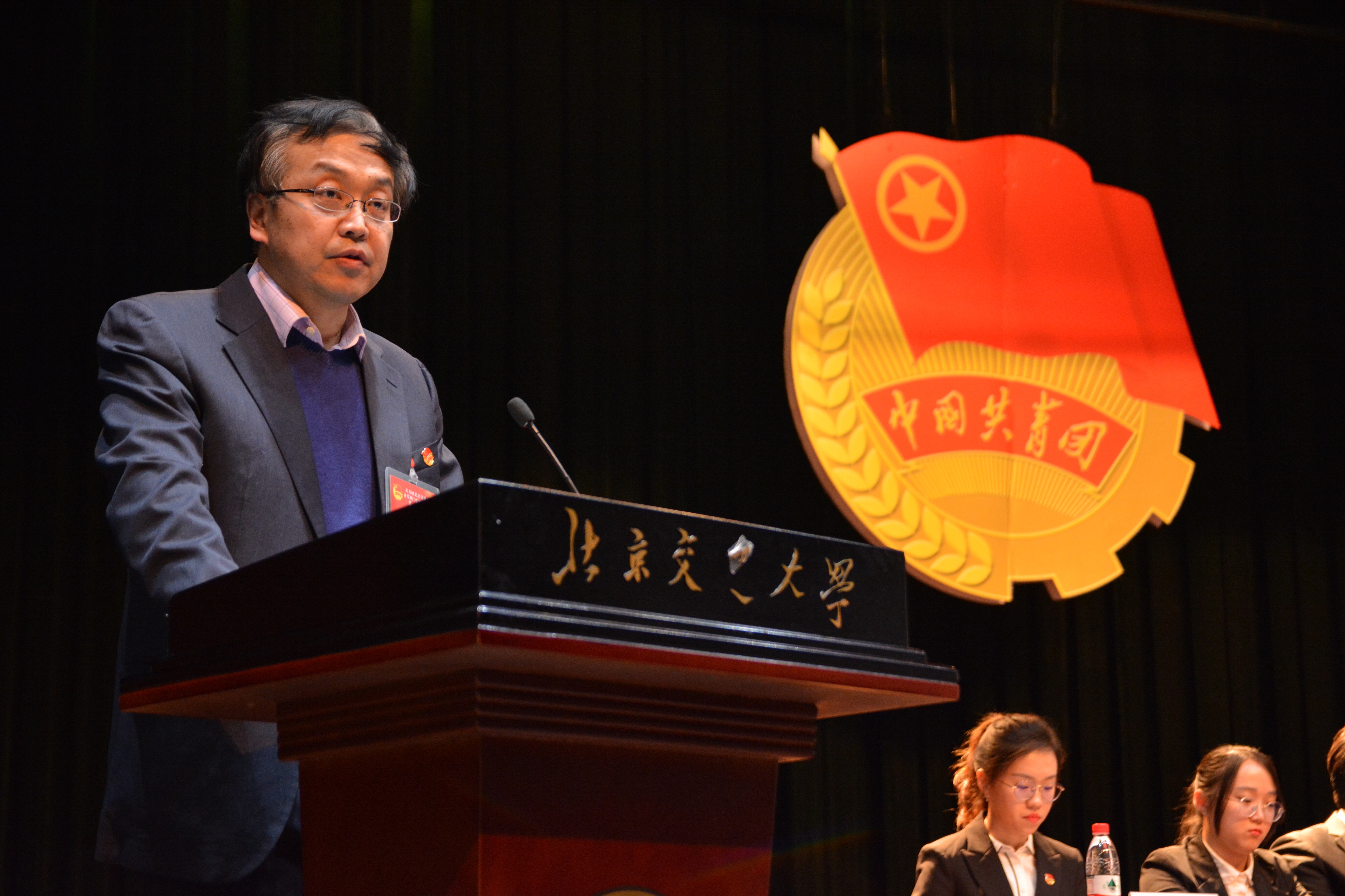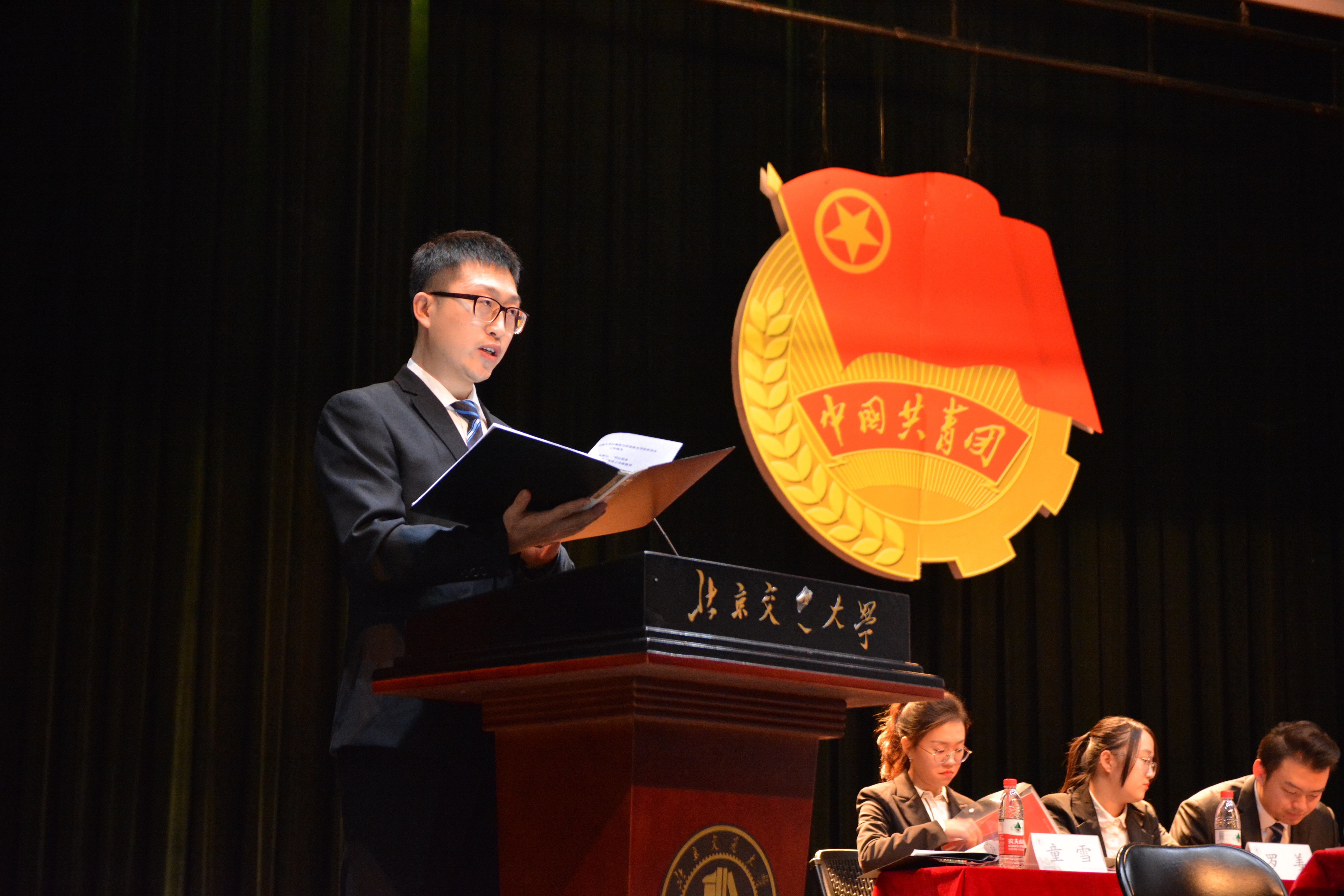 大会主席团常务主席原晓敏同志代表共青团国产自拍 计算机与信息技术学院委员会向大会作了题为“不忘初心、牢记使命,谱写新时代共青团工作新篇章”的工作报告。报告回顾了过去三年的团学工作,指出三年来学院共青团组织在思想引领、组织建设、志愿实践、创新创业、学院文化等多方面工作都取得了瞩目的成果,开创了学院共青团事业的新局面。报告对共青团今后一个时期的工作进行了部署和展望。报告指出,未来一个时期,国产自拍 共青团工作将紧密结合共青团工作的新形势、新任务、新要求,贯彻党的群团工作会议精神,服务学校改革发展大局,创新工作思路,围绕一个根本任务,聚焦两大阵地,筑牢三大基石,团结带领全院广大青年不忘初心,牢记使命,不断推进共青团工作的科学化、系统化、精细化,促进团员青年全面成长成才。