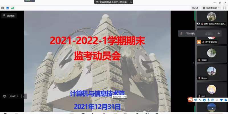 2021年12月31日下午17:00,国产自拍 通过腾讯会议线上召开2021-2022-1学期期末考试监考动员会,会议由教学副院长熊轲主持,八十多名教师参加了会议。