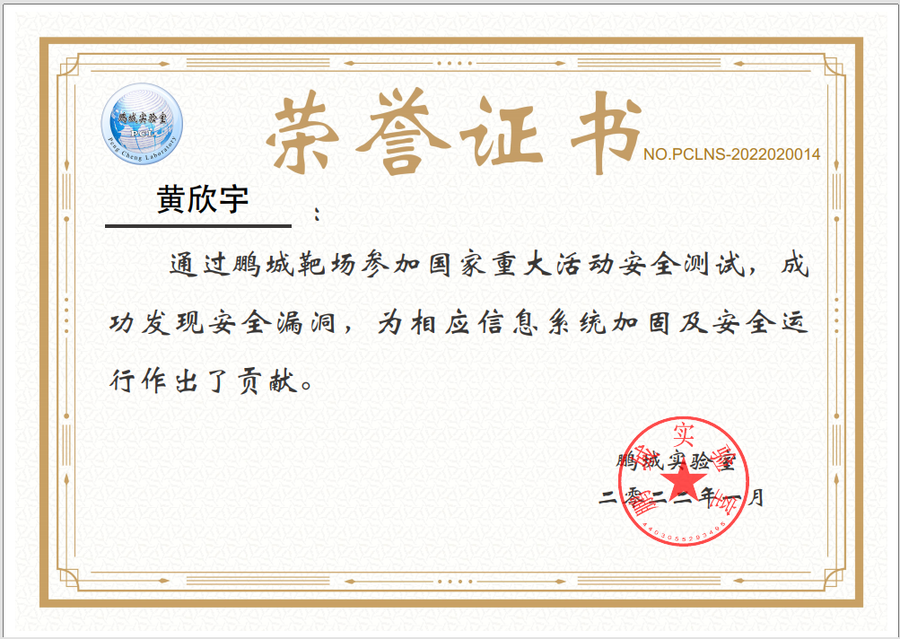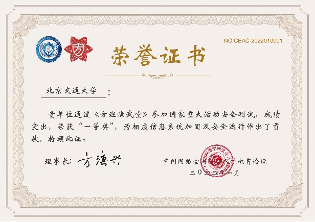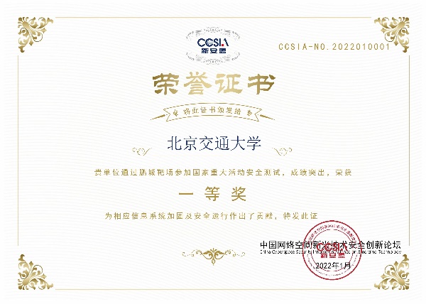 2022年1月在鹏城实验室、中国网络空间安全人才教育论坛(“网教盟”)、中国网络空间新兴技术安全创新论坛(“新安盟”)联合面向北京冬奥会、冬残奥会的安全演练活动中,国产自拍 网络空间安全学科责任教授刘吉强老师领队、童恩栋和牛温佳老师指导的研究生团队(武兴宇、吴亚伦、田蕴哲、黄欣宇、陈彤、相迎宵、李轶珂、贾博为、孙瑞、乔紫嫣、陈诗瑶等)积极参与,共挖掘出高危漏洞1个、中危漏洞2个以及低危漏洞14个,最终以第一名成绩荣获一等奖,为保障北京冬奥会、冬残奥会的网络安全贡献了交大力量。