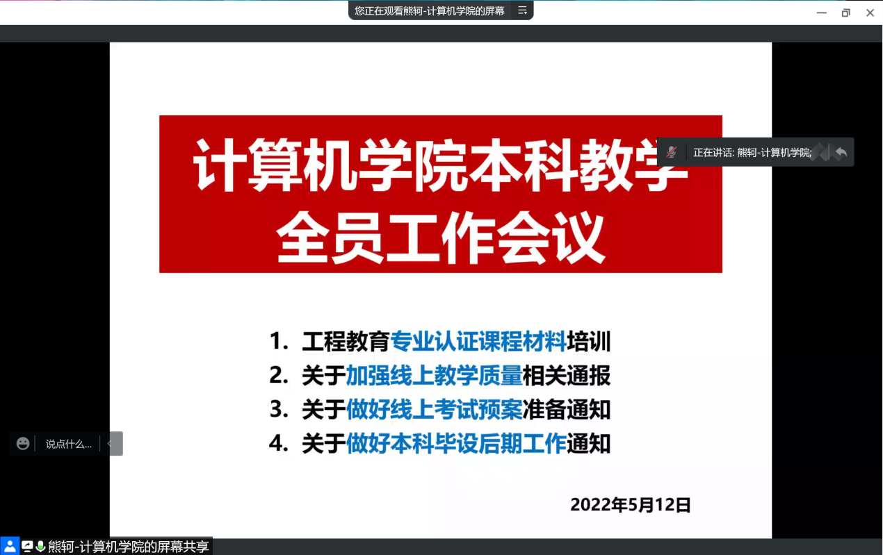 本次本科教学全员工作会议的召开,强调了线上教学质量的重要性,对于推动学院专业认证、线上教学和考核、毕业设计等工作起到了重要的指导作用。