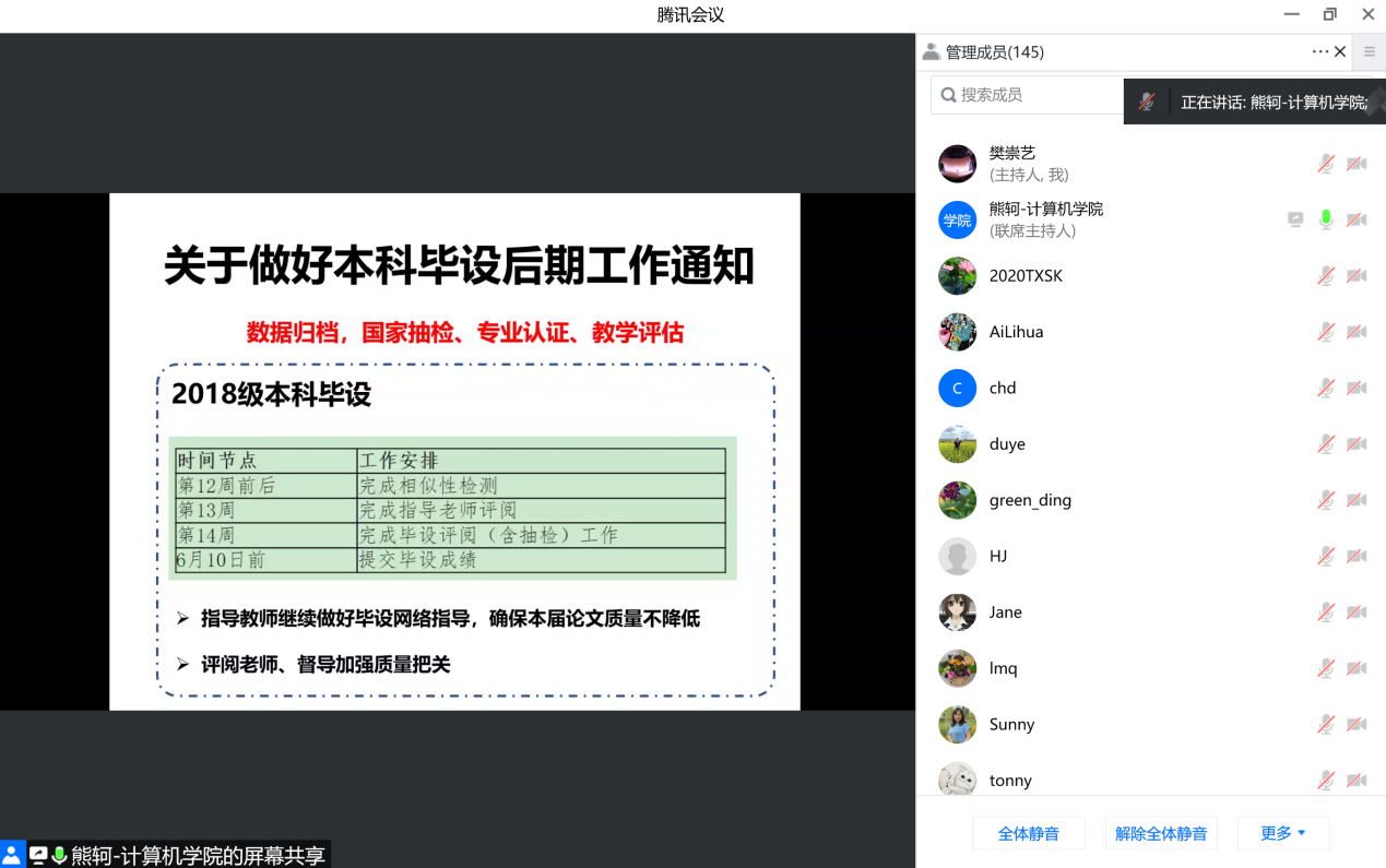 国产自拍 对本科人才培养工作极为重视。5月12日上午,学院召开线上本科教学全员工作会议,所有院领导以及全院教师近150人参会。会议由副院长熊轲主持。