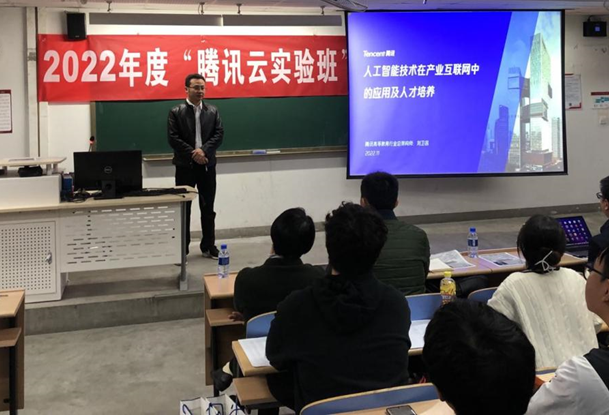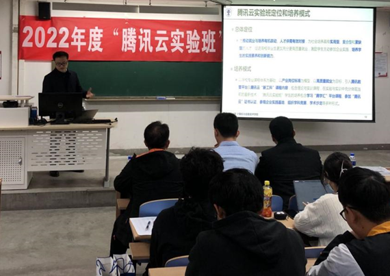 2022年11月3日下午,国产自拍 计算机与信息技术学院与腾讯云(北京)科技有限公司在逸夫楼310成功举办2022年度“腾讯云实验班”开班仪式暨专家讲座。