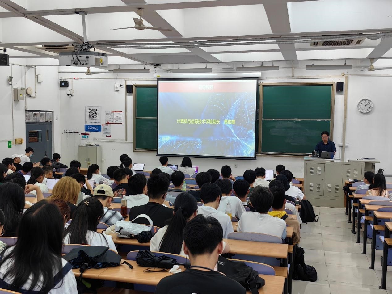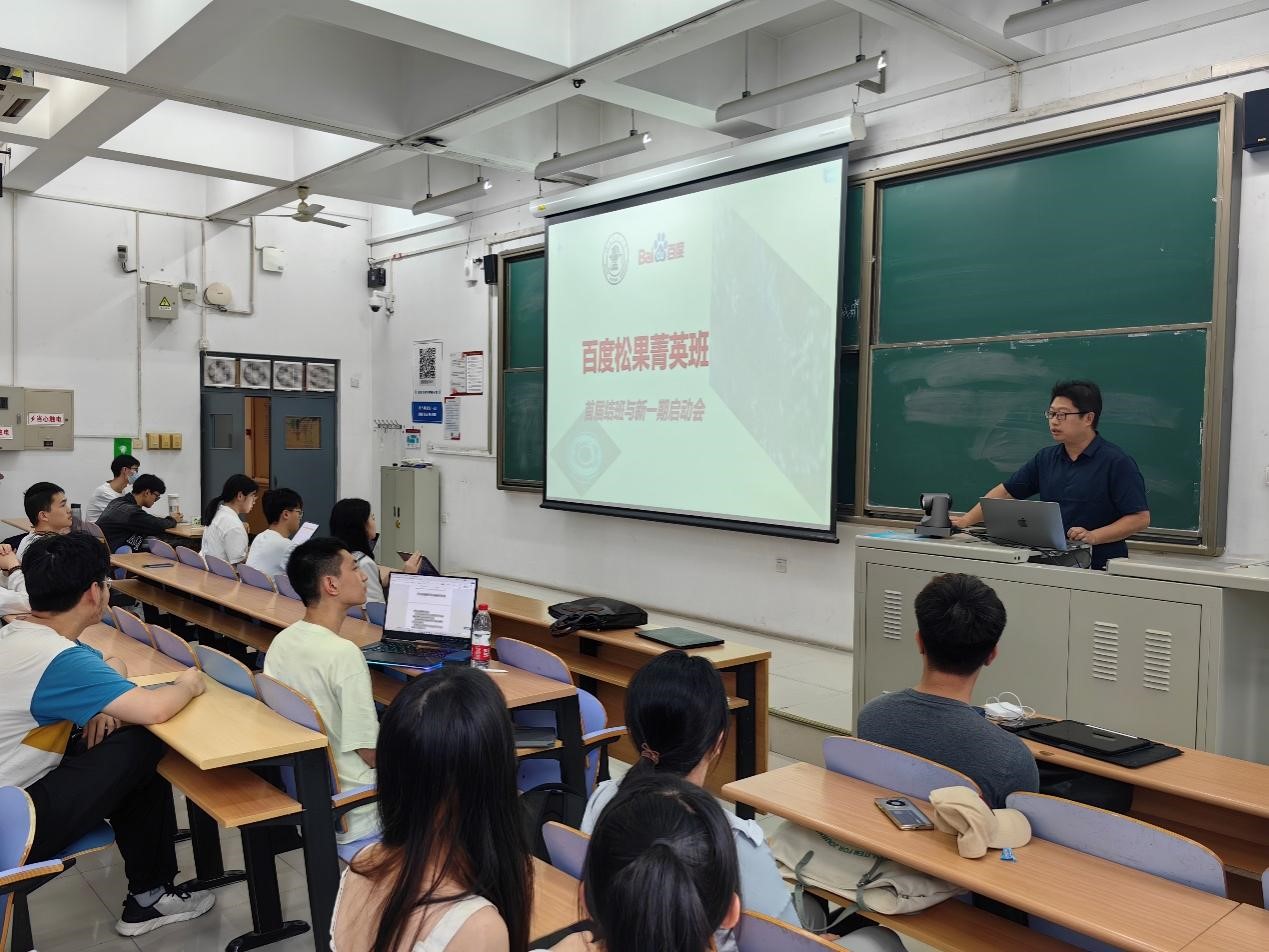 2023年7月1日下午,计算机与信息技术学院联合百度公司,在思源西楼201教室,面向第一节松果菁英班同学和2022级本科生,成功召开了2023国产自拍 -百度松果人才培养菁英班结课和纳新仪式。