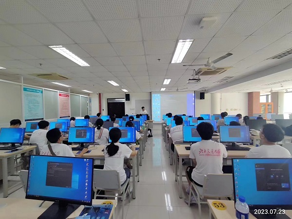 7月23至24日逸夫楼实验室,百余名营员参加了Python编程实践活动。教师团队从实践案例分享、编程思路讲解、实际代码的实现,让没有编程经验的营员们顺利完成项目任务。看到程序运行,营员们欣喜地表示,对计算机程序设计的兴趣大大增加,希望未来能继续计算机的学习,深入探索人工智能的奥秘。