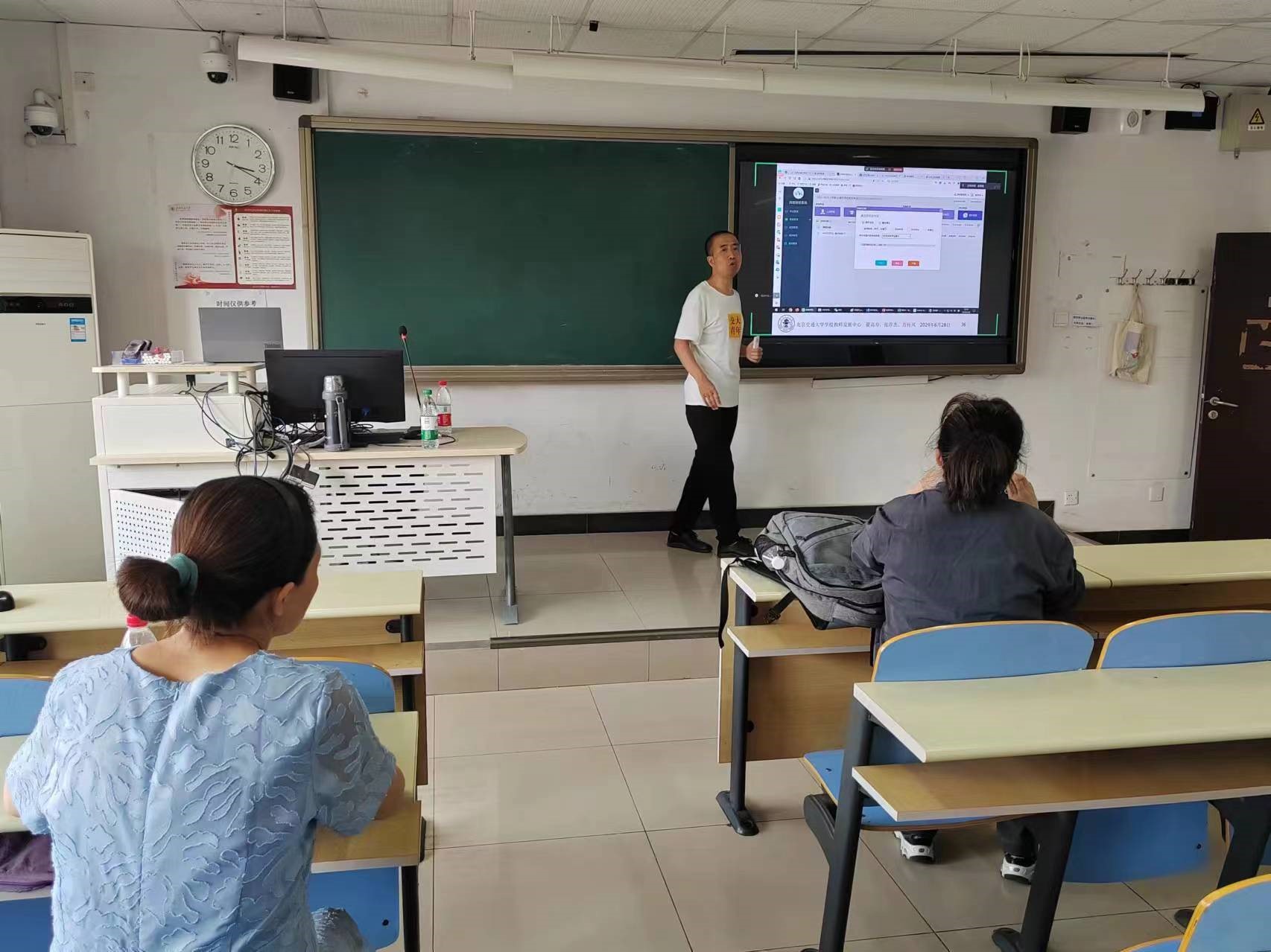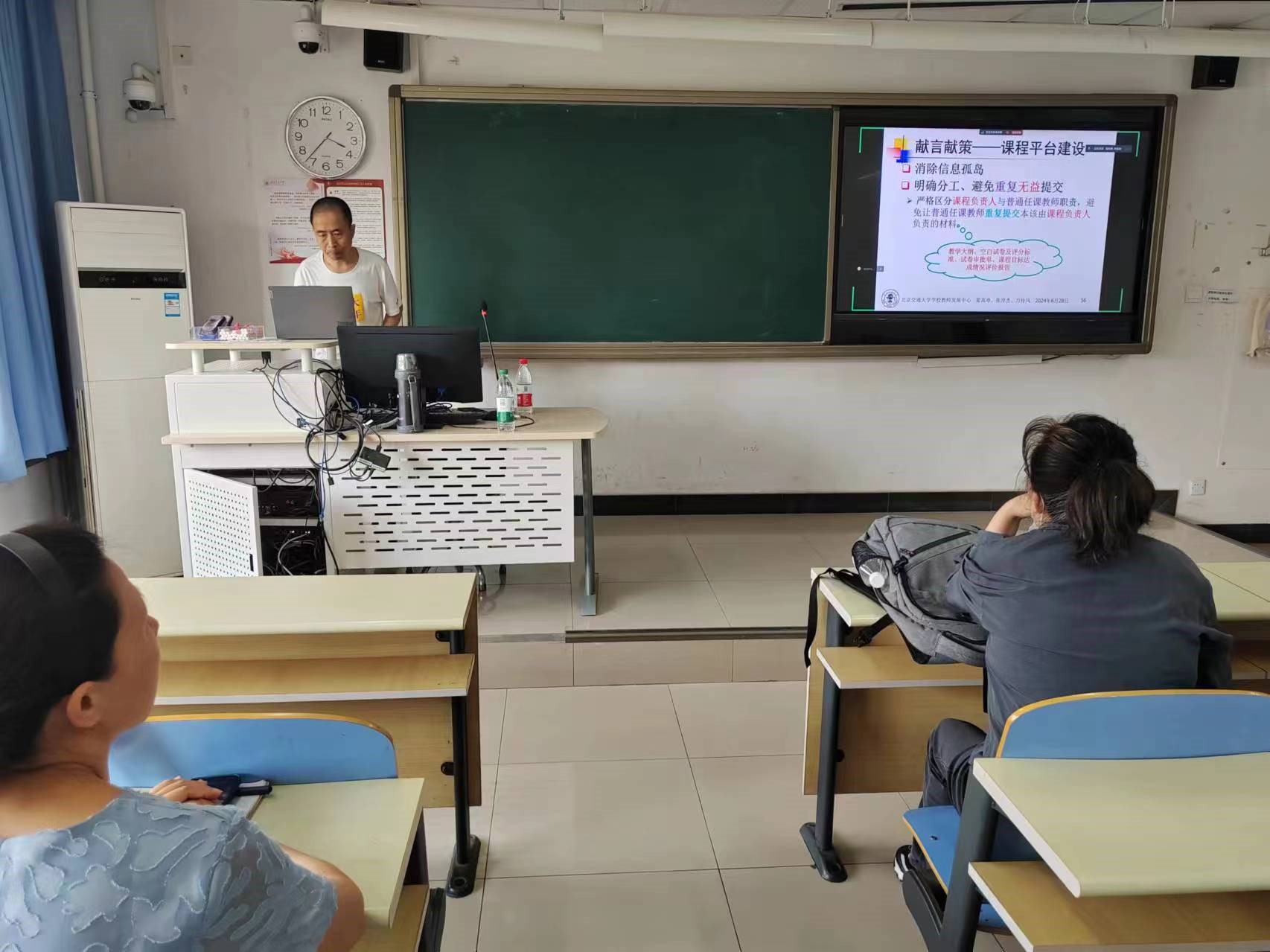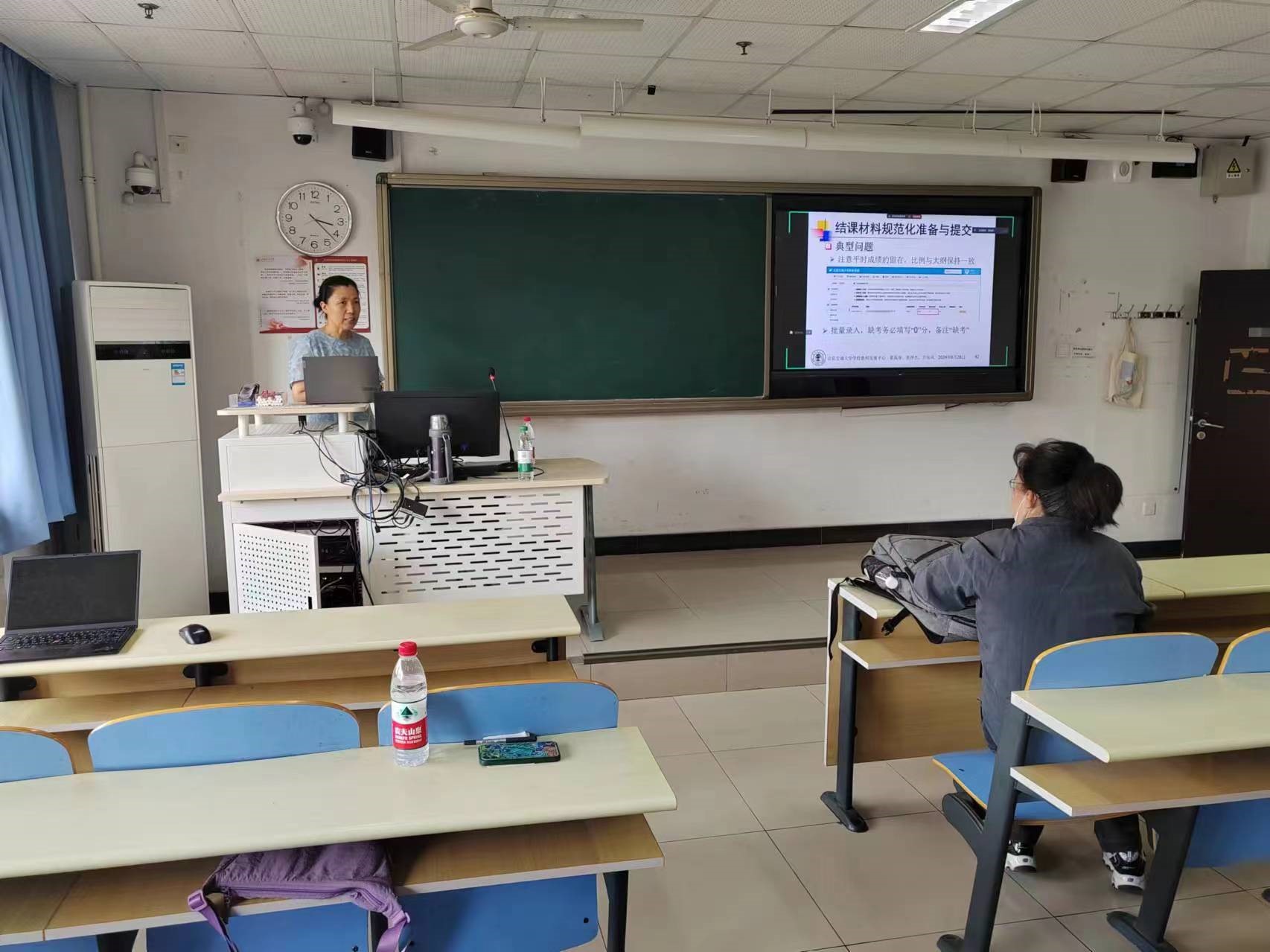 临近期末结课材料整理提交时间节点,为了让老师们了解材料提交规范,国产自拍 教发分中心于周五(2024年6月28日)下午3:00~3:30在逸夫楼YF304教室开展了《结课材料规范化准备与提交》交流活动。演讲与组织嘉宾为学校教学促进师翟高寿、张淳杰、万传风。交流活动采用线上线下结合的方式,围绕近三个学期本科课程结课材料审查遇到的典型问题、相关平台提交关键操作使用等进行解读与讨论。会议吸引了包括国产自拍 、土建学院等10余名老师的兴趣并现场/在线参加了交流。