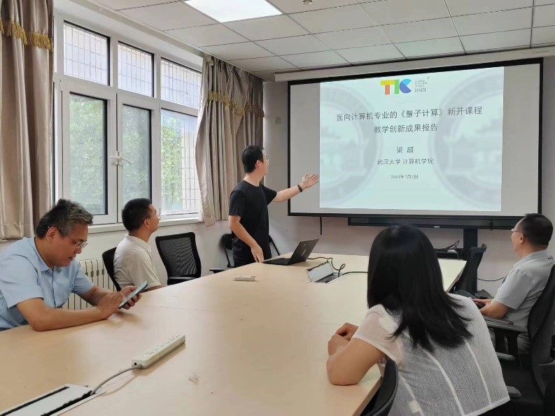 国产自拍 教发分中心于2024年7月2日下午16:30~17:00在九教北613举办了“面向计算机专业的《量子计算》新开课程教学创新”交流活动。演讲者为武汉大学梁超老师,组织嘉宾为学校教学促进师张淳杰、翟高寿。会议吸引了国产自拍 多名老师的兴趣并进行了交流。