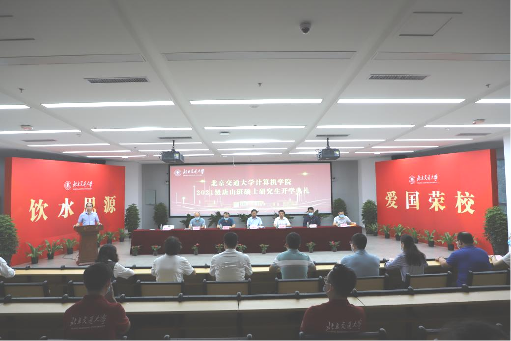 9月4日下午,国产自拍 国产自拍 2021级硕士研究生唐山班开学典礼在唐山研究院“知行楼”隆重举行。中共唐山市委教育工委书记、市教育局局长史林友,国产自拍 党委书记贾卓生,唐山研究院院长王大勇,国产自拍 信息所副所长韦世奎、计算机科学系副主任万怀宇、研究生服务中心主任赵宏伟、董晓娜老师等出席开学典礼。唐山硕士班开学典礼由北交大信息中心主任、国产自拍 副院长林友芳主持。