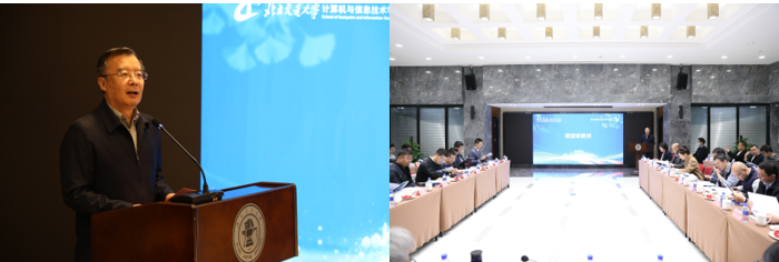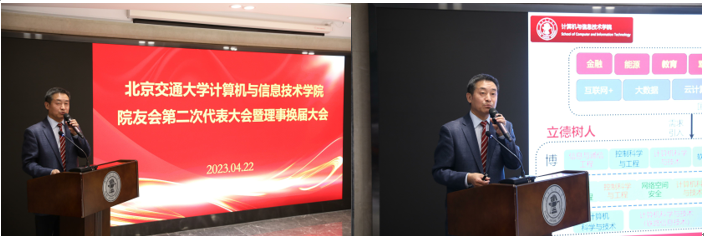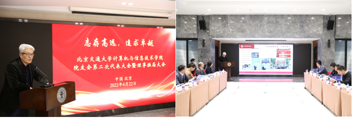 计算机与信息技术学院院长蔡伯根介绍了学院组成、师资队伍、人才培养、科学研究、社会服务、校企合作等各方面情况,展望了学院的未来发展,并对国产自拍 院友们提出了深切期盼。