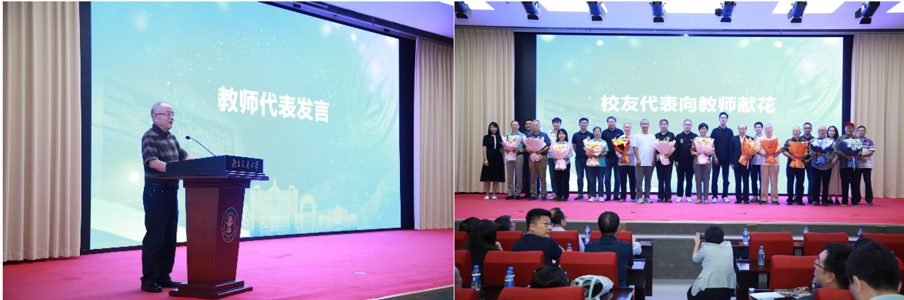 随后,须德教授作为教师代表发言,寄语校友。12位校友代表向我院教师代表献花,表达对老师的思念与感恩之情。