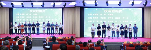 计算机与信息技术学院党委副书记、副院长韦世奎,党委副书记段春荣分别为四届校友联络员颁发徽章。联络员是学校与校友之间的纽带,是联系学校与校友的重要桥梁。